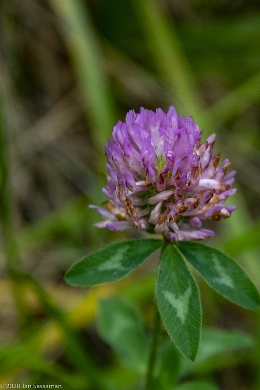This may be a Red Clover. These flowers are abundant in mid-May around the detention ponds on the south side. Red clover was brought to America in the 1500s by European farmers and is now used as a cover crop. It is a legume, and over-wintered red clover can produce 2 to 4 tons of dry matter and fix 70 to 150 lb. of nitrogen per acre.