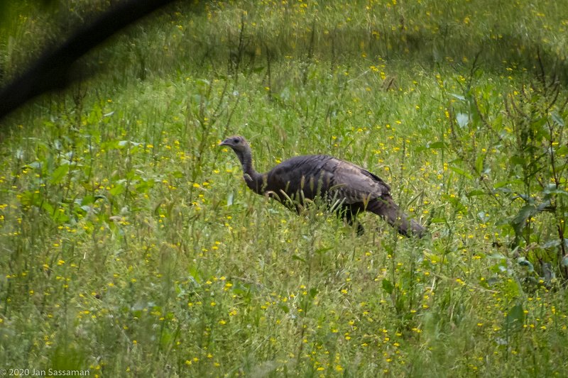 This female bird was calmly walking through the field of the horse farm south of, and adjacent to, Galloway Ridge as she pecked at food here and there in the field.