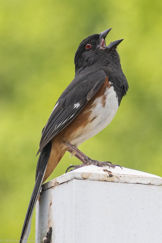 This little guy was standing on the top of the fence post singing his lungs out. He was watching me as I approached, but didn't deter his song.