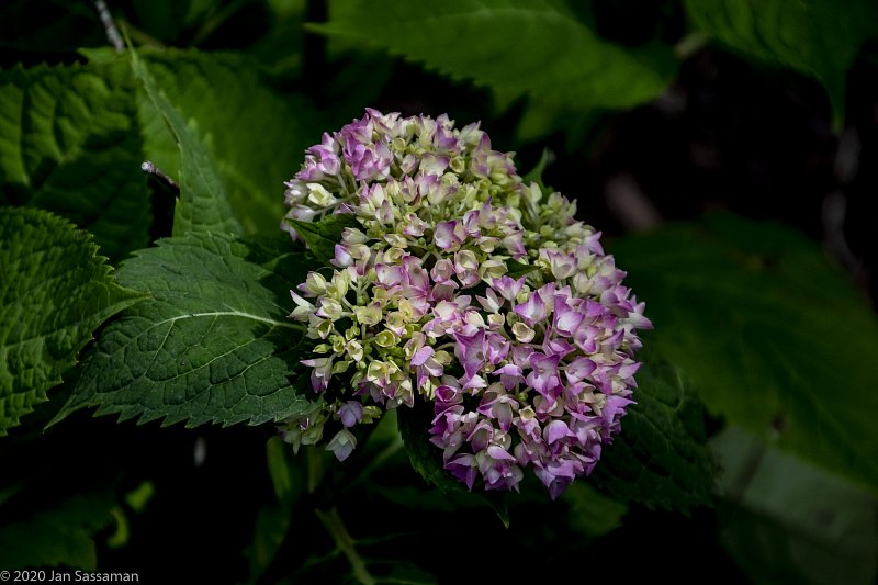 A hydrangea bloom beginning to blossom by the loop driveway. I am not going to try to identify this one.