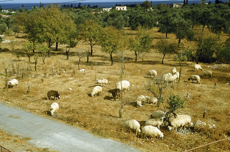 In 1960, grazing sheep in the open plots of land were a common sight in Kyrenia, as in this field adjacent to our house. The trees shown in the photo produced almonds. Now there is a large apartment house on this and several adjacent plots of land.