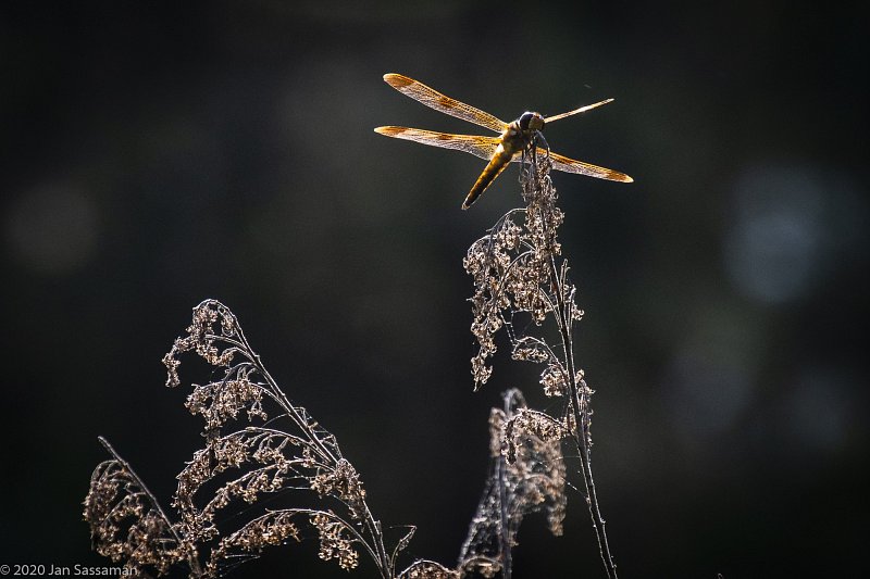 I will call this a Painted Skimmer, although distributed widely in surrounding counties, it has not been recorded in Chatham County since 2000. With the strong back lighting, some of the characteristics, such as stripes on the thorax, are masked. It is the strong back lighting, of a late afternoon photo, that appeals most to me.