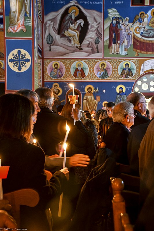 Easter is a significant holiday in the Greek Orthodox tradition, and associated celebrations include both church attendance, sometimes for hours, and meals, also sometimes for hours. In the evening of Saturday before Easter Sunday, there is a candlelight service at midnight when people bring a candle to be lit in church and then hopefully taken home still lit.
