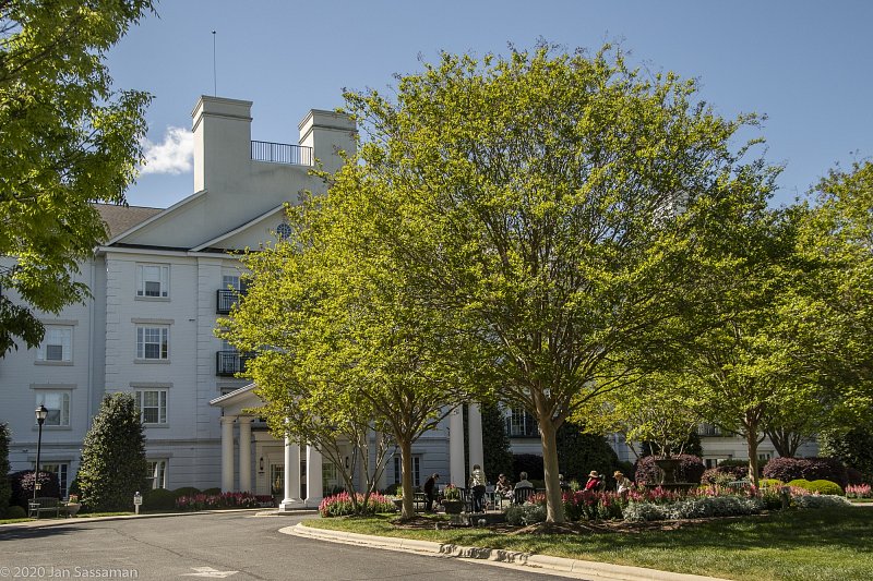 The trees around Galloway came into pretty full leaf in April. The benches out on the east side in front of the fountain across from the main entrance has become a popular gathering place for people to sit and visit with each other.