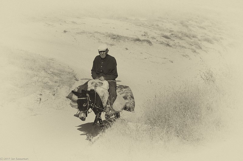 As I watch this man make his way on his donkey, slowly across the arid high plains of Cappodocia, Turkey, I could only think of the hundreds of thousand - million - of people who made similar journeys across this land, on foot, on donkeys, on camels over the millennia. So I processed the picture to enhace its sence of timelessness.