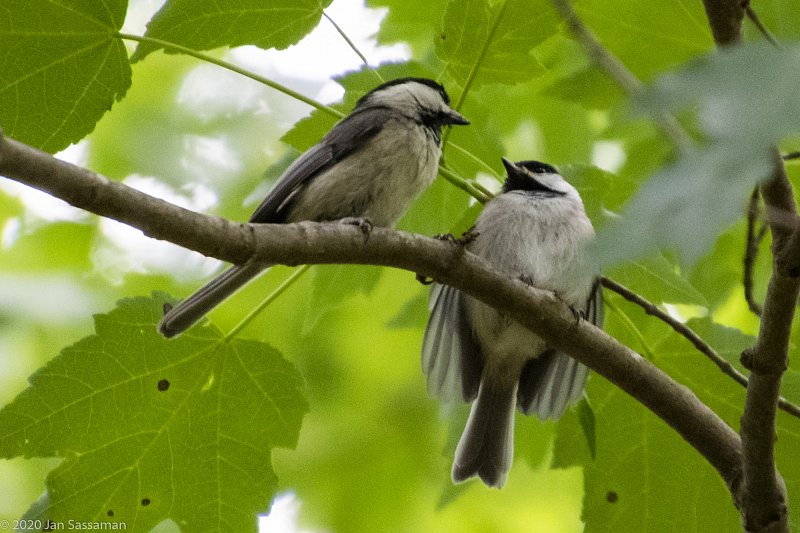 This pair of Chickadees appeared to be busy in the tree above me passing food back and forth. Carolina Chickadees flock together in groups in the Winter, but in earl Spring they pair up and often the mating pairs remain a couple for the next year if they both survive the Winter.