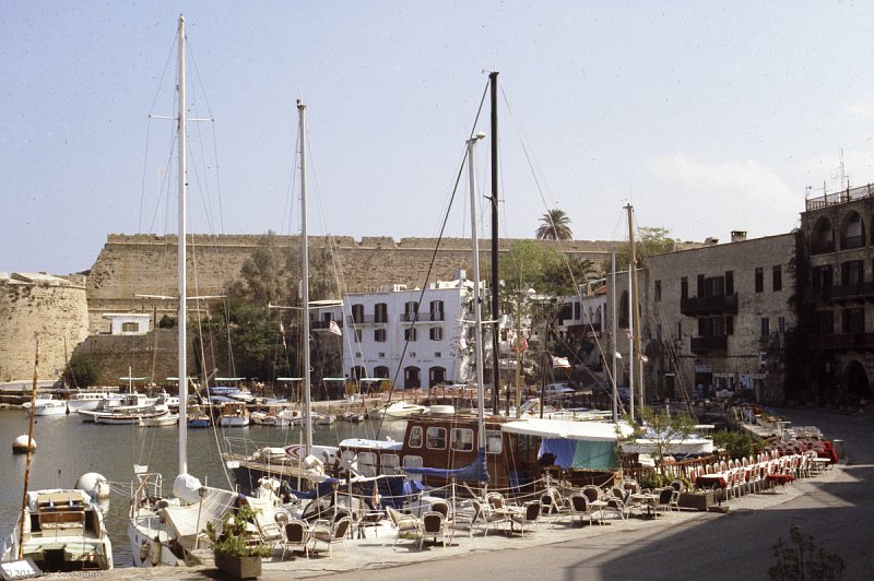 By 1988, Kyrenia Harbor had changed - larger boats had appeared, but the fishing boats were still there. A couple of restaurants d appeared along the harbor walkway.