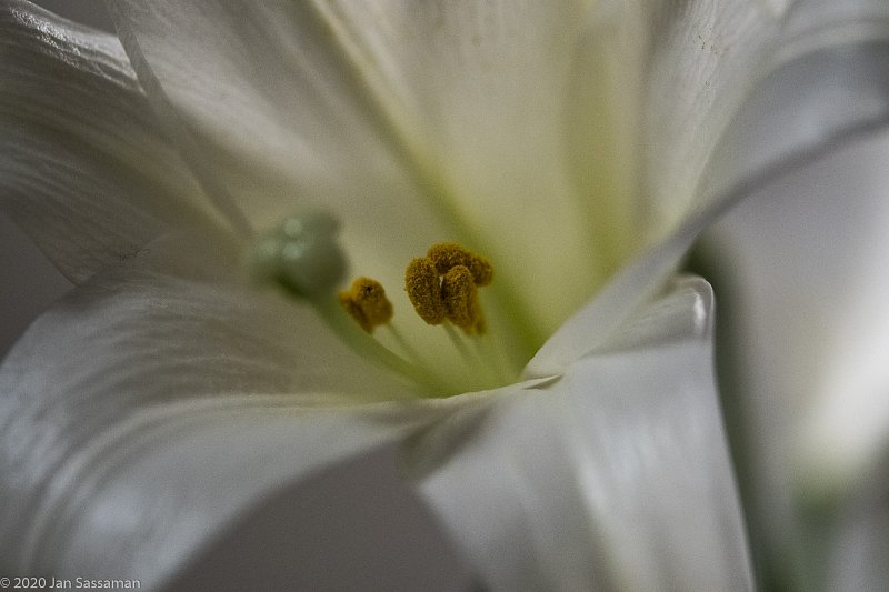 What is April without Easter Lilies. Here is a close up of the anthers with pollen deep in the flower.