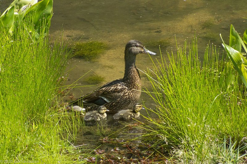 Here she is proudly swimming around with two chicks. I am not sure why there are not more, other than snapping turtles have been seen in this area.