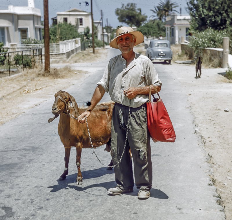 This man, probably a Turkish Cypriot posed for me beside our house in 1960. Down this street, about 100 yards, was the Turkish Quarter, where many of the local Turkish Cypriots lived. Further on down the street was the old Ottoman Town of Kyrenia, surrounding the harbor.